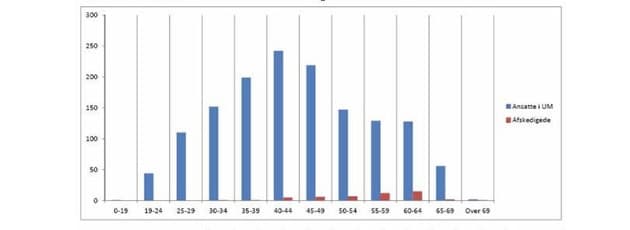 De medarbejdere, der blev afskediget, var fordelt således i de forskellige aldersgrupper: